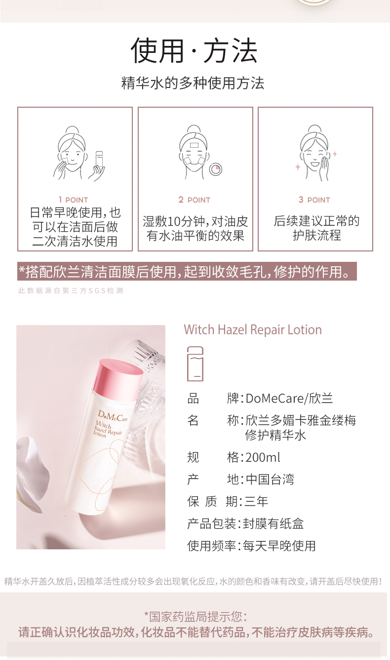 DoMeCare欣蘭金縷梅精華水深層修護(hù)屏障爽膚水控油細(xì)膩肌膚